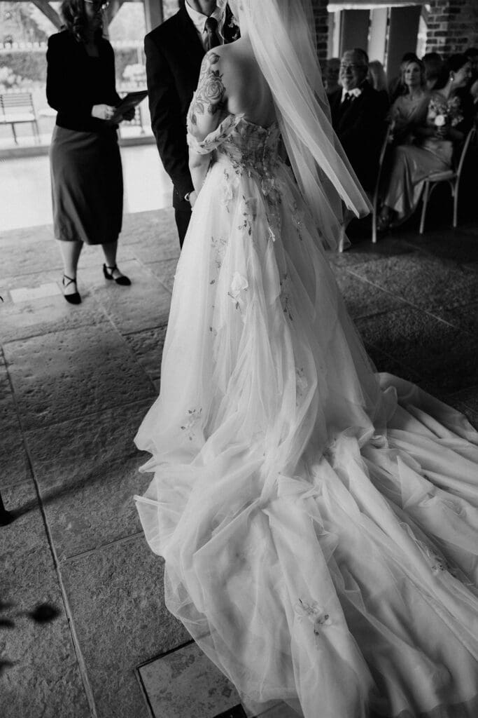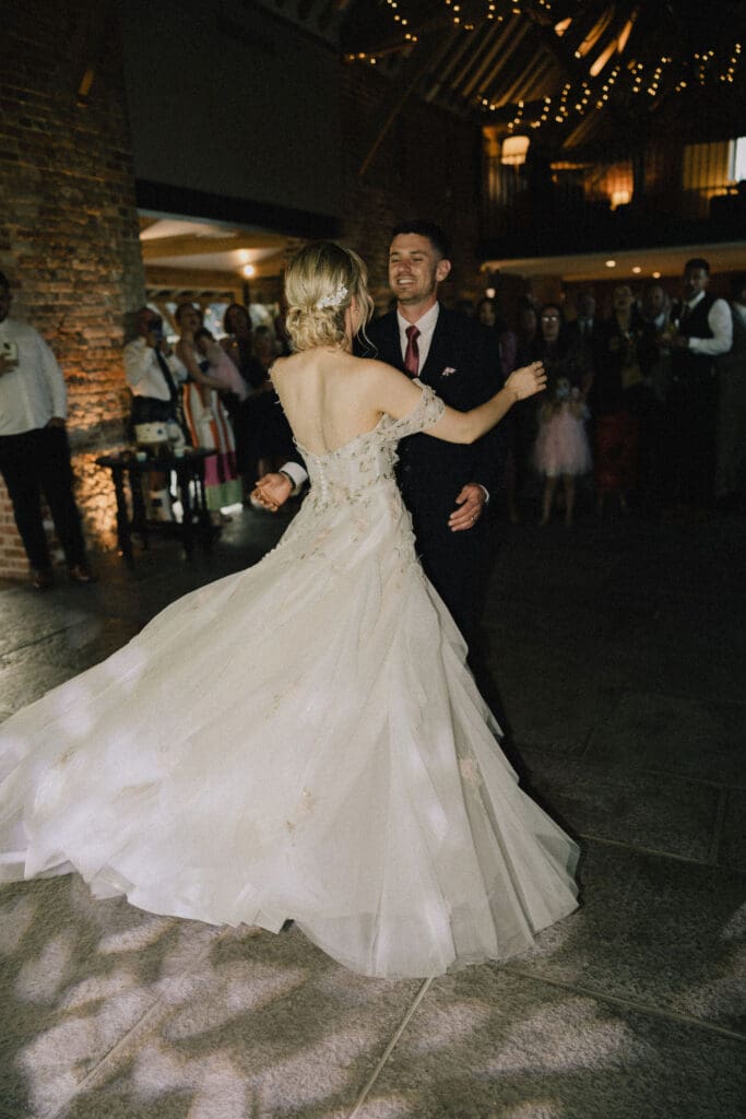 It suited the barn setting perfectly elegant yet relaxed, detailed yet effortless. In the soft light inside Rackleys Barn, the floral details caught beautifully, adding depth to every frame.